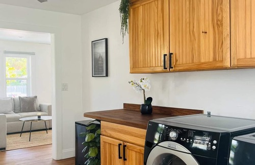 Fully equipped kitchen, washer/dryer, 2 full bathrooms stocked with toiletries, fresh bed & bath linens plus a sleeper sofa - just in case.
