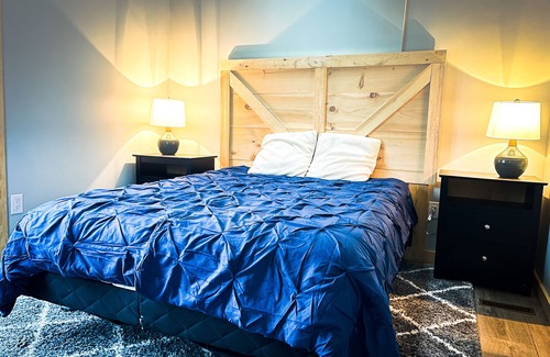 Master Bedroom - Queen sized bed, end tables, lamps, a closet with hangers and 4 drawer dresser to tuck all your items away. On a clear night, you can see the stars through the skylight, or use the walkout to the backyard to enjoy the fresh air.