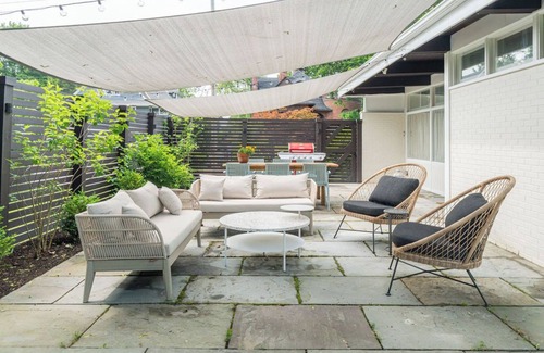 Welcome to your perfect Kingston getaway! Located in uptown Kingston, close to shops and restaurants, this stylish mid-century home is full of charm, light, and modern updates. Enjoy vaulted ceilings, exposed brick, hardwood floors, and a sleek kitchen with butcher block counters and high-end appliances. Relax on the private Trex-style deck or bluestone patio. With two bedrooms, a den/office, and decorative fireplace, it's ideal for work or rest. Easy access to parking and transit makes it perfect for your Hudson Valley stay.