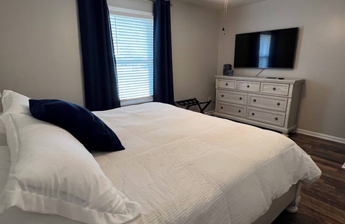 Make yourself at home in this 2-bedroom North Augusta townhome with large porch and deck. Enjoy the convenience of great wifi on a quiet cul-de-sac. With a king bed and full bed, 1.5 bathrooms and stocked kitchen equipped with everything you need for a comfortable visit. Experience the magic of downtown North Augusta at our townhome. 2 miles from Augusta’s hospital district and walking distance to the Greeneway and SRP park.