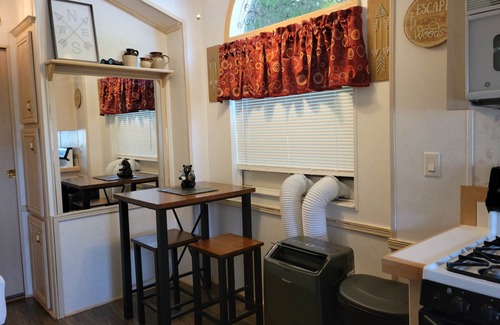 Crabapple Daze is in a quiet residential community with EASY year round access on a cobble road off of Moody farm Rd that leads you from downtown Maggie Valley with all its restaurants and shops to this wonderfully cozy getaway. The Bungalow has two bedrooms with Queen beds with a cozy bathroom. A fully stocked Kitchen provides all the comforts of home, The gas firepit and Hot Tub are warm & cozy for those chilly nights on the porch.