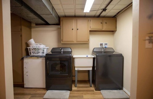 The ranch-style home is located in a quiet neighborhood and offers an open-concept living area and a large kitchen and island, perfect for preparing meals to be enjoyed while sitting in the dining room overlooking the fenced in backyard. This 3 bedroom and 1.5 bath home offers plenty of sleeping areas in the Master (King bed), and two guest bedrooms (one queen bed and one twin bed) to comfortably sleep 5 people. Basement had washer and dryer for your laundry needs.