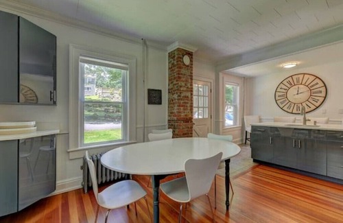 Step back in time within this striking 1900s Colonial-style home, a mere 7-10 minute walk from Lenox’s charming downtown. Beyond the handsome façade of this multi-story 3-bedroom abode lies a beautifully manicured garden, a spacious patio perfect for al fresco dining, and a BBQ grill waiting for your culinary exploits. On the inside, 1841 sq. feet of old-world vintage allure awaits, along with modern furnishings, lightning-fast 1 GB/s Wi-Fi, and a Spectrum HDTV with 60 channels!
