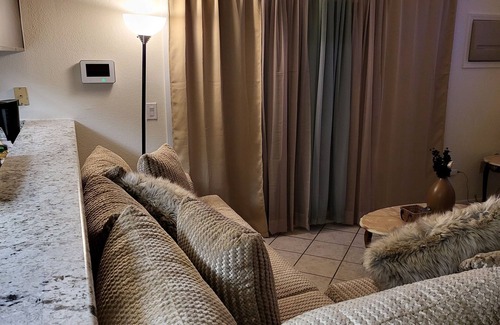 Enjoy the arcade style game room, with pool table, foosball, Pac-Man and golf. Relax in the hot tub or just lounge on the large chase while taking in a great movie on the 75” smart tv. Home newly remodeled! 1 bedroom downstairs, 3 upstairs, all with new mattresses and smart tvs.