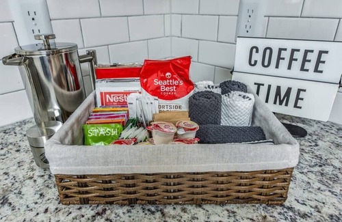 Beautifully renovated 2 bedroom apartment with a full kitchen stocked with ceramic cookware and all the utensils you'd find at home. Wrap up on the couch in a throw blanket and put on a movie with our 50" Roku TV that allows you to stream all of your favorites. When it's time for bed, make your way to one of two queen size beds with green tea cooling memory foam and crisp white linen. In the morning, wake up and pop your computer open on one of our desks, it's time to work - or not! ;)
