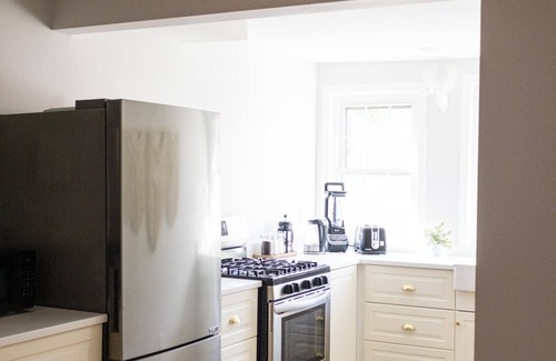 The full bathroom includes a beautiful clawfoot tub, vanity, and shower. The kitchen is full of new appliances, a fridge, and there is a brand new washer and dryer so you can take care of everything at home.
