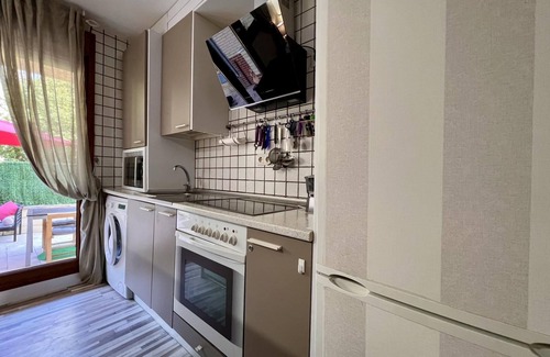 Located in a quiet area with views of the green valley, the apartment is distributed in two bedrooms, one with a double bed and the other with two single beds, a living-dining room, a bathroom and a large terrace where you can enjoy sunny days.