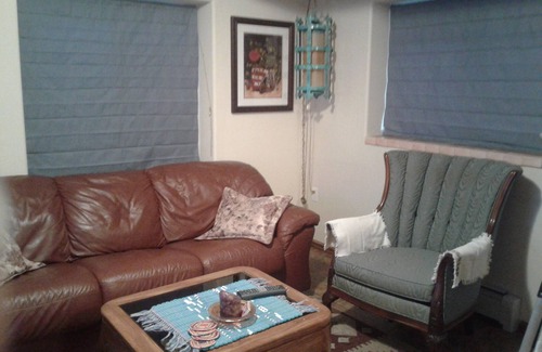 Beautiful , cozy one bedroom, one bath apartment with private entrance, covered.deck, mountain views and private off street parking. Full kitchen stocked. Tastefully decorated in Southwest theme. Comfortable king bed. Antique dressers and lots of storage. Large walk-in shower. Large covered deck with lots of seating and a swing. Also a patio table and umbrella and a grill on the patio area. Smoking allowed outside. There are steps to go to lower level.