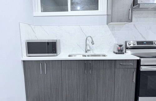 “Welcome to our cozy and private basement retreat, perfect for solo travelers, couples, or small families. This thoughtfully designed space features a comfortable bed, a fully equipped kitchenette, and a modern bathroom. Relax in the inviting living area with a flat-screen TV and high-speed Wi-Fi. Conveniently located near popular attractions, restaurants, and shopping centers, our rental offers both comfort and accessibility. Whether you’re in town for business or leisure.