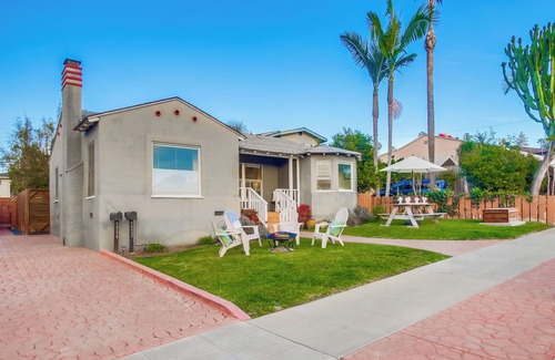 Sea Breeze Retreat is the perfect beach home! This 2 bedroom 1 bath updated 1920 vintage beach house has views of the ocean from the kitchen and front yard. Sun filled living room and dining area seats up to 6 with a separate eating nook that seats 3. Encased by a wall of tropical bamboo, you can gather with family in the backyard for a meal or in front around the picnic table. The master bedroom has a garden like setting and a Queen bed, large closet, desk area, and a flat screen TV. The 2nd bedroom sleeps up to 3 with a Queen bed and single pull chair bed. Fold out couch in the living room provides extra sleeping space for 1 or 2. Updated with a contemporary kitchen. It even features off-street parking for up to 2 cars! Just 2.5 blocks to Bermuda Beach overlook along the cliffs next to the famous Sunset Cliffs Nature Park.