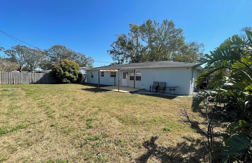 Enjoy your stay in Florida in this newly renovated home. You and your family/friends will be 15 minutes from the beach and downtown St. Petersburg. This safe and quiet neighborhood offers a walking trail, lake, and park within 0.4 miles. Enjoy the beautiful Florida weather on our front and back patios. This home additionally offers a large fenced-in backyard great for kids or pets!