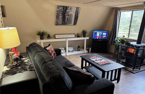 With propane heating or a wood fireplace available, guests can relax in the comfortable living space indoors or enjoy the propane fire pit on the balcony while overlooking the forest. Enjoy your morning coffee while looking for wildlife and birdwatching. *Unplugged/ Off-Grid/ Generator & Battery Power * No phone service, Wi-Fi available * Smart TV * Mountain gravel road (Oct thru Apr: Four Wheel Drive may be required)