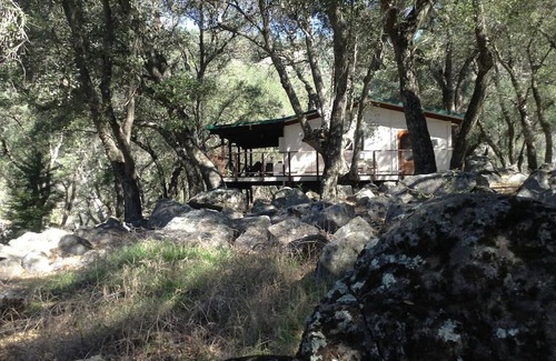 Getting here is part of the adventure: the property is reached via Nate Harrison Grade Road, a 5.8-mile dirt road from Highway 76. While narrow in places, it is safe for most passenger cars with good brakes and plenty of fuel. Alternate access is available via S6 near Lake Henshaw, though it includes a steeper downhill section. Please note the nearest store is about 45 minutes away, so plan accordingly.