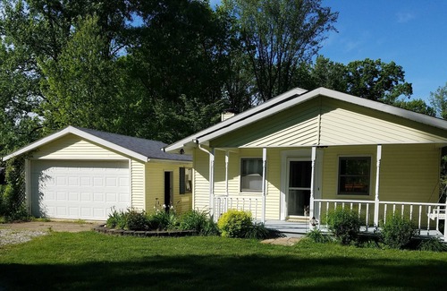 The front porch features two Adirondack lounge chairs and a porch swing for casual afternoons. Guests can also enjoy a fire pit with chairs and picnic table for night time fun! Please plan to provide your own firewood.