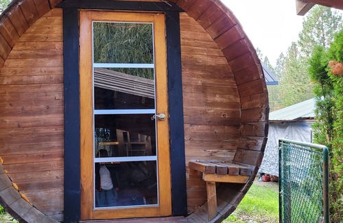 The owner/hosts built the cabin as a winter project in 2021. Most of the timber are from the 5 Acre property and customize for his unique A Frame design. Suitable for a romantic get-a-way and family stay. Located in Armstrong, B.C with lots of activity and berry farms to visit.