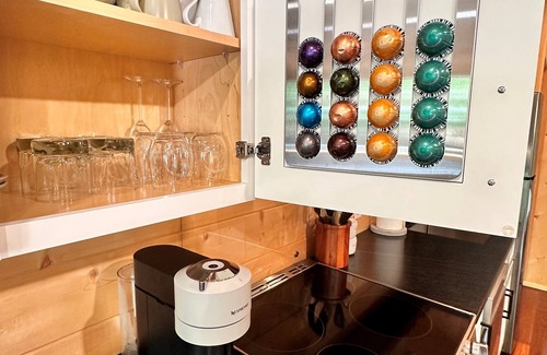 Just 5 minutes from downtown Brevard, this Scandinavian style cabin offers a conveniently located setting packed with amenities. Step inside this cozy retreat with a nice living room featuring a plush sofa bed for extra guests. Enjoy a variety of provided Nespresso coffees on the large porch or stay inside with A/C, heat and high speed WiFi. With heated bathroom floors, rainfall showerhead and body sprays, your ending to a day spent outdoors will reenergize you with it's spa-like feel.