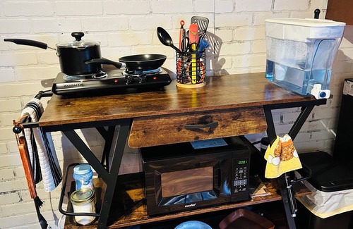 This peaceful and private studio cabin is the perfect home base for your trip to Fenton. With a cozy bedroom featuring 1 full bed and 1 twin bed, guests can unwind in comfort. The bathroom is equipped with a large shower, soaps, towels, and a hairdryer. A fully stocked kitchenette with mini fridge, microwave and hot plate is ready for quick meals. An office nook with high speed internet, desk, and TV with cable and streaming options available for your work from home space or staycation. You will have your own private front porch and patio with charcoal grill and outdoor seating. You’ll also have access to the front property woods and fire pit. Whether you're looking to relax inside or explore the area, this quaint cabin has everything you need for a fantastic stay. Fall in love with Fenton and enjoy the magic it has to offer.