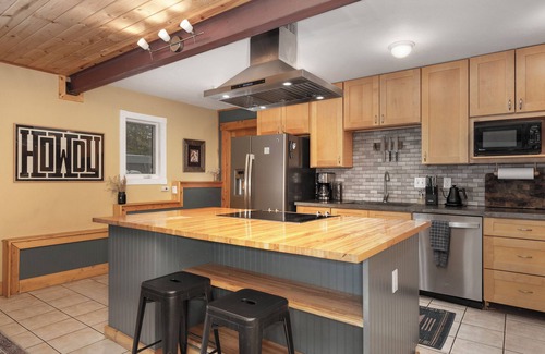Enjoy panoramic south and west-facing views for stunning sunrises and sunsets. Relax on the large deck and hot tub. Inside, experience cozy cabin vibes with our open floor plan, remodeled kitchen, custom wood finishes and two fireplaces