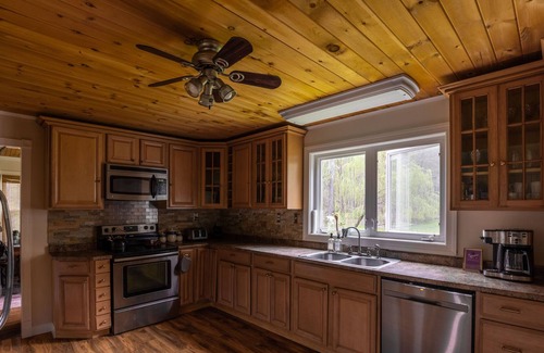 Three cozy bedrooms with comfy memory foam mattresses, and a full bath with spa shower and soaking tub, complete with luxury amenities. But you didn’t come upstate to stay inside - so enjoy our front yard, where you can rock on the porch while your kids play in the sandbox, roast s’mores by the fire pit, or enjoy dinner alfresco at our large outdoor table. Or enjoy total privacy under the big sky in our backyard, surrounded by two creeks that connect on our property, with a weeping willow tree standing watch.