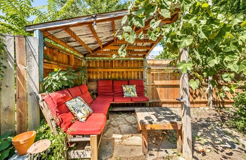 Porch and patio seating. Finished basement complete with TV, comfy full-size futon bed, full bath with Steam Shower, TV, Blueray player, and office room (see photos).