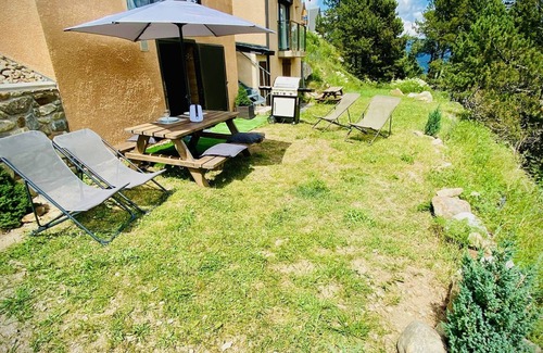 On the garden level, a large room accessible from the outside with a spa area with a pleasant jacuzzi. The room is also designed for storing skis, shoes, bikes, etc. It also has a shoe heater. This level also houses the laundry room, with washing machine and dryer, as well as a second refrigerator with freezer for more comfort during your stay. In good weather, you can enjoy the garden with a picnic table and an outdoor lounge, as well as a gas barbecue for grilling.
