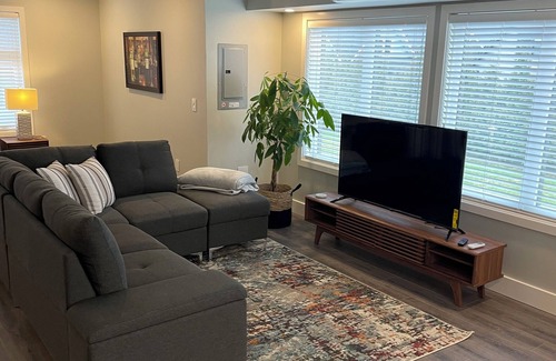 Langley Township is waiting for you at this Coach House Loft The cozy space features a king bed in the bedroom top of the line bedding and a sofa bed in the living room. Guests can enjoy amenities like heating, WiFi, and a washing machine. The bathroom offers heated floor luxury shower and a hairdryer for added convenience. Enjoy your time in Langley Township at our adorable Coach House