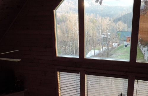 WELCOME TO "BEARADISE" This cabin features excellent mountain views , an open floor plan, vaulted ceiling, hardwood floors, 2 flat-screen TVs and a warm fireplace in the main living area and master bedroom. Two-story windows offer excellent views of the surrounding mountains and flood the house with lots of light. Enjoy relaxing in the hot tub on the screened in porch with miles of mountain views. See the lights of Anakeesta from the front porch rocker. Also we frequently have visits from a Mama bear and her 3 cubs.