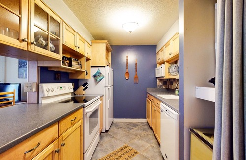 After a day of exploration, return to the condo to relax on the patio or cozy up by the fire, equipped with all the amenities you need for a comfortable stay. Additionally, the condo complex features a refreshing seasonal pool for warm summer days, while the town square offers a picturesque pond for swimming, fishing, and boating activities.