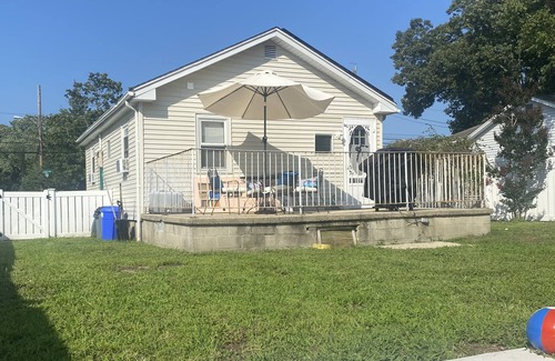 Comfy cottage evoking that old-school shore feeling of relaxation, sunshine, gulls calling & waves lapping at the sand. Enjoy coffee, drinks and barbequing on the back deck or sunbathing with a good book on the backyard patio! Privacy fencing with solar lighting ensure extra quiet contentment while you soak up the sun and shore vibes on the recliners or patio set complete with comfy pillows and umbrella. Inside you'll find two ample bedrooms featuring Queen bed in one, full & twin trundle in the other. Kitchen is equipped with stove, full refrigerator, microwave, pots and pans, coffee maker and toaster. The brand- new bathroom features both shower and tub, and heat fan to remove the chill! One block to the relaxing bayside beach where you may encounter one of the resident eagles! Short drive to the ferry to Lewes Delaware, historic Cape May, Cape May County Zoo, several free white-sand beaches, wineries, microbreweries, nightlife and the Wildwood Boardwalk. Library, restaurants and several parks and playground within blocks! Perfect to recharge your batteries if you're looking for relaxation! Ideally located to find new favorite places to eat, drink, hike, bike, boat and visit at the Jersey Shore!