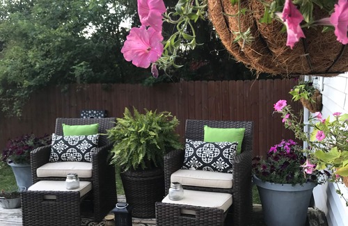 This cottage itself has 2 bedrooms & 1 bath. Outside, there is a lovely sitting area, fire pit and gas grill for your use.