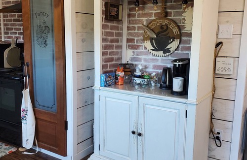 Escape to this fully renovated modern farmhouse, complete with a private fishing pond, fire pit, and spacious deck overlooking wooded backdrop. Perfect for family getaways, romantic weekends, or a relaxing retreat in nature. Sleeps 4, with a cozy living area, fully stocked kitchen, and fun amenities like ping pong and outdoor games.
