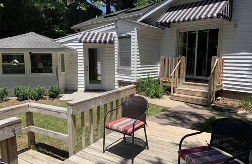 Located on Jonathan Creek in Maggie Valley, our home offers all you would want in a mountain vacation home. Over 200 feet on Jonathan Creek, you can relax on the deck, fish, enjoy the fire pit, or just take in the views. Convenient for golf, hiking, Waynesville shopping, and Cataloochee Ski Resort. Parking up to four cars. One king size bed and two Queen size beds sleeps six. Three exterior security cameras. No Pets allowed. Bathrooms, bedrooms and kitchen remodeled 2021-2022.