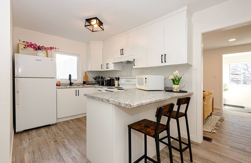 ★ Welcome to our peaceful retreat! Enjoy our detached home. As you walk-in, you will notice the beautiful decor and spotless cleanliness. Large windows that pour in natural light from the front to the back of the home.