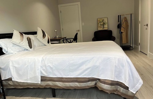 The modern place is a sanctuary for you to retreat, relax and revive yourself. A mini-retreat designed for you to travel alone, or with a friend or partner to refresh your love of life. Brand new, clean, bright guest room with a private bathroom, kitchenette and cozy work space. Contemporary décor with modern amenities and an experience all can enjoy!