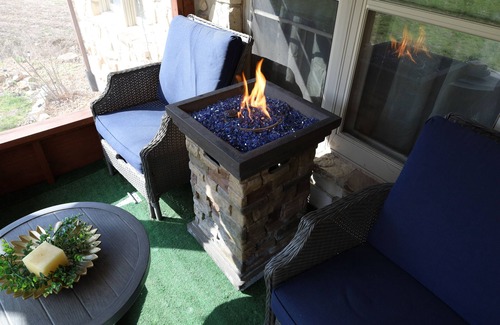 This rental is close to the downtown area. (1 mile) The trolley will pick you up right next to the house. There are 3 bedrooms, 2 full bathrooms, a living room with a fold out murphy bed, a kitchen, a screened in patio and a deck with a sitting area and fire pit We are on a quiet cul-de-sac street. We are also next to Caseys (1 minute walk) so you can easily grab snacks or things you forgot. This rental is for the top level of house. The bottom level of house is a separate unit.
