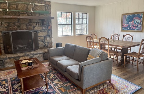 Enjoy your stay at our renovated hilltop cabin situated on nearly 4 acres. Look out from the extra large back deck to the mountains and **sometimes** the lake! Upstairs enjoy an open concept living, dining and kitchen with two queen bedrooms. Downstairs boasts a large game room with ping-pong table and lounging area. Also downstairs is one bedroom with full sized bed and second bedroom with two twin over full sized bunk beds! Each floor has a full sized bathroom. The front porch is set up for watching horseshoes out front or build a fire in the outdoor firepit in the drive. There are two covered parking spots in the carport. We enjoy going one way down our road just one mile to WMA land where you can fish, kayak and explore. The other direction one mile is Lacey's marina to rent or store your boat. Also quickly accessible to public boat launch, bait shop, trails and Greer's Ferry amenities.