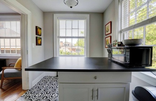 This historic gem is a few blocks in either direction from the State Capitol and downtown Frankfort. The 1930's brick building has been stylishly renovated and historically preserved. This studio apartment has a full-sized bed with fluffy linens, blackout curtains and sound-insulated door for your comfort. The carefully restored Art Deco bathroom is stocked with hotel-quality towels. The freshly remodeled kitchen has cooking essentials to help you feel at home. We are owner-managed with pride.