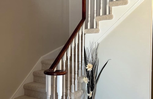 Enjoy our property that features three bedrooms upstairs, including 2 queen beds and 1 double bed. A toddler bed is also available upon request. Full living room, dining room with kitchen on main floor for all your cooking and family needs. Enjoy free wifi, netflix, and disney+. Parking for 2 cars available. Walking distance to the Georgian shopping mall, several grocery stores & many restaurants.