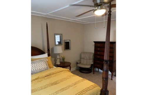 3 Beds 1 bath. King bedroom, queen bedroom, and full size bedroom. Living room has a couch and the game room has a let out sofa bed. Washer and dryer are on premises. Covered porch with sitting area. Home sleeps up to 8, but there is an additional fee for any more than 4 guests per stay. There is also a 250 dollar deposit required per stay. Contact before booking for a special rate with any bookings of 1-2 guests.