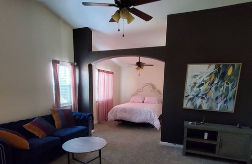 Enjoy a peaceful stay in is House, you can relax on the backyard or enjoy the sunset from the front porch ,home is located in a desirable location 5 min away from restaurants grocery stores hospitals,etc.