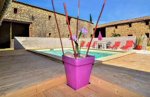 Beautiful and large air-conditioned vacation home with private pool without neighbor and in the heart of the small village of St-Gervais on the Gard between Provence, Cevennes and Camargue.