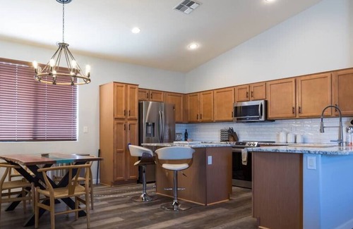 This property may require an Arizona lease to be signed for any stays of 30 days or more. Typically, the terms are no different from what you agree to on this site and this is more a requirement by the state of Arizona and/or this community. This home also has a utility cap that applies for stays of 30 days or more. The homeowner pays all home utilities up to a utility cap of $300, tenant pays any utilities over cap. This cap typically only applies in the summer months depending on tenant utility usage.