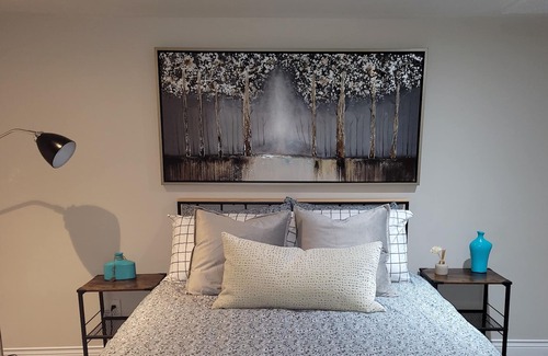 Enjoy a stylishly decorated studio apartment, centrally located. There is a private, separate entrance to the unit. Main St is just a block away with many different shops and restaurants. The Lake Nipissing waterfront is just a short 10-minute walk and boasts some of the most beautiful sunsets in the world!