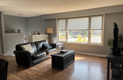 Comfy king bedroom suite with office. Full kitchen and dining area. Located in north Barrie walk to Georgian college And Royal Victoria hospital(rvh). Enjoy outdoor patio area and gas grill. High speed internet