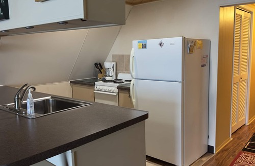 Space: A-Frame style home with 2 floors. Upstairs bedrooms are semi private and do not have doors on bedrooms