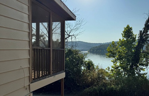 Wake up to lovely lake views in this private 1-bedroom cabin with a pullout couch. Eat by the dining table with water views beyond the windows, cook your favorites in the full kitchen, and kick back on the deck steps from the pool. Great spot for fishing, boating, or simply relaxing.