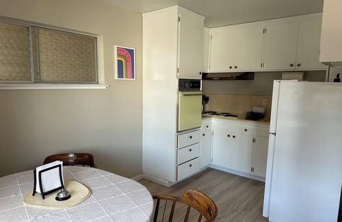 Our cozy studio will provide you with all the essentials you need for a long stay. The bedroom features a full-sized bed. You will find a clean and spacious bathroom with toiletries provided for your convenience. There is a dedicated work space with high-speed wifi. A well-equipped 60's style kitchen and dining area is at your disposal so you can enjoy a meal at home. You will also find a spacious living room where you can relax, read, watch TV or enjoy the view of the fog rolling.