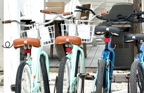 This cute and beachy one bedroom 2nd floor unit has a Cali king tempurpedic bed, a private deck as well as a BBQ grill and outside shower. It's a short walk to a big beach and a short bike ride to the bay beach and gazebo for summer concerts and sunsets.