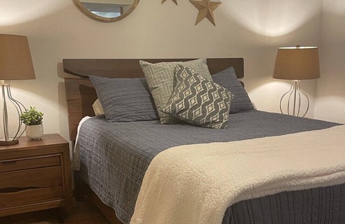 Enjoy a private getaway 4000β up in the mountains at this 3BR/3BA mountaintop retreat, located just 15 minutes from downtown Waynesville! Relax in the hot tub with beautiful views of the surrounding ranges, or sip morning coffee on the wraparound deck. Other highlights include a fireplace and remote-controlled awning on the deck. LIVING AREAS Kick back beside the wood-burning stove and watch a new movie on the 42" Roku TV and DVD player in the main living area. Downstairs, a second living area and futon. Make hot cocoa and gather around the fireplace in the third living area, furnished with a futon and armchair. KITCHEN & DINING The chef in your group will appreciate the modern kitchen, equipped with a full suite of appliances. Downstairs, a convenient kitchenette provides additional space for preparing snacks, which can be enjoyed at the wooden table for four. BED & BATH This two-story home sleeps six guests between two bedrooms and two queen futons in the second and third living areas. Find quiet privacy in the master bedroom, furnished with a queen bed and cable TV. An en-suite master bathroom is configured with a walk-in shower. A second bedroom is outfitted with two twin beds. The adjacent bathroom features a tub/shower combination. A third bathroom is configured with a walk-in shower. OUTDOOR AREAS Take in gorgeous mountain views on the wraparound deck. Dine alfresco at the table set for four. A manual-controlled awning offers shade on sunny days. In the evenings, treat yourself to an indulgent soak in the two-person hot tub while you watch the sunset. An expansive yard abutting the forest boasts a gas grill and firepit. Guest amenities include complimentary high-speed wireless internet, and parking for three cars in the driveway. Please note that four-wheel drive is recommended to access this home in the snow. THE LOCATION Easily explore both rural and urban destinations from this Blue Ridge sanctuary! Drive just 15 minutes to visit a plethora of shops and dining options in downtown Waynesville. An abundance of outdoor recreation awaits, including hiking, biking, swimming, fishing, ziplining, rafting, tubing, kayaking, and skiing. Hiking enthusiasts will enjoy convenient access to several scenic trails. Visit downtown Asheville (35 miles) to discover a plethora of fine dining, shopping, nightlife, and breweries. Iconic attractions include the Biltmore Estate, Biltmore Village, Grove Park Inn, and Pack Place Square. If visiting in the winter, drive 18 miles north to hit the slopes at the Cataloochee Ski Area. In the fall, be sure to take a drive on the famed Blue Ridge Parkway to see the changing colors!