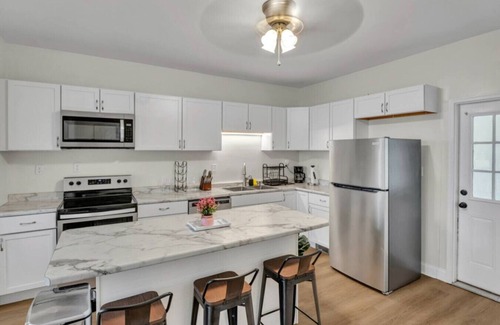 Discover the perfect blend of comfort and quality in this newly renovated 2-bedroom, 1-bath home. Featuring 2 stunning rooms with a large queen-size bed in each and an additional sleeping room on the couch in the living room. Additionally, this home offers other sleeping options, including a cozy couch and an air mattress. This modern retreat is crafted to impress and provide the ultimate relaxation. Perfect for families or groups seeking a centrally located space next to everything in Evansville.